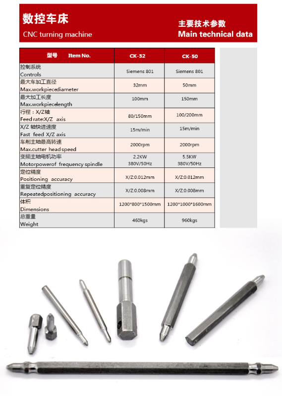 CK series CNC lathe can turn workpiece with high efficiency and precision. And have functions of drilling and threading. The lathe is equipped vibration plate which can up and down the workpieces automatically. And there are CNC systerms optional.