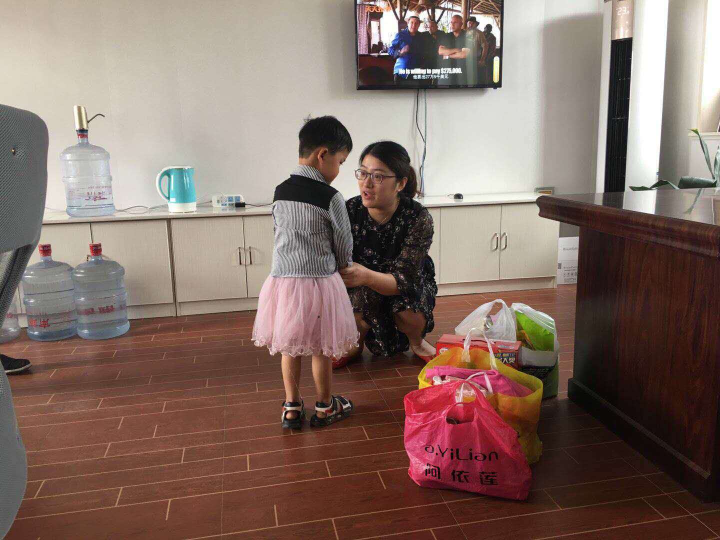 (一大早,公司代表來(lái)到了委員會(huì)看望小囡囡)
